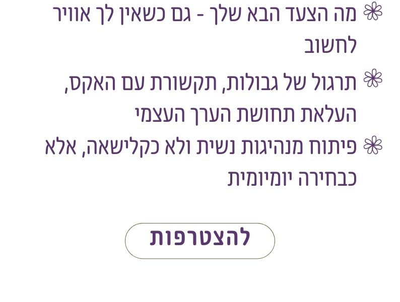- פיתוח מנהיגות נשית ולא כקלישאה, אלא כבחירה יומיומית.
