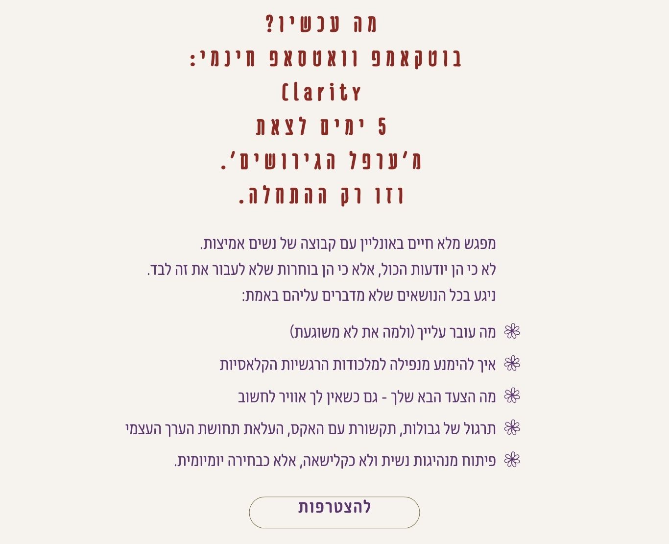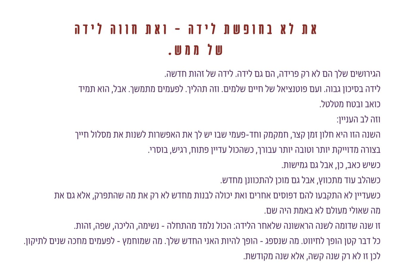 - להתחבר למסלול מדויק לעבור איתו את השנה הזו בלי לאבד את עצמך